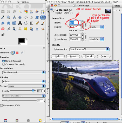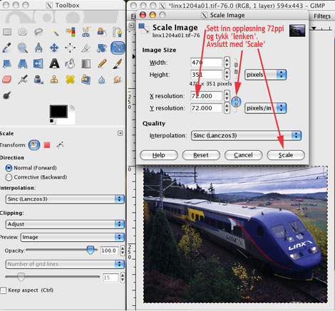endrer vi oppløsningen til å være 72ppi. Skjermer klarer ikke å vise