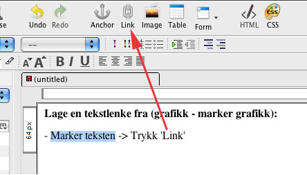 Lage en tekstlink: Marker tekst -> Trykk 'Link'