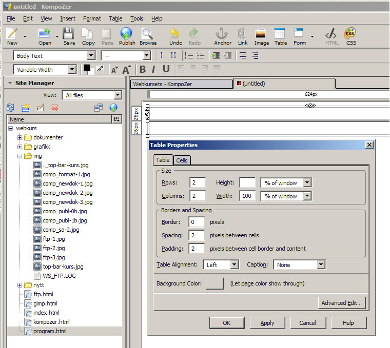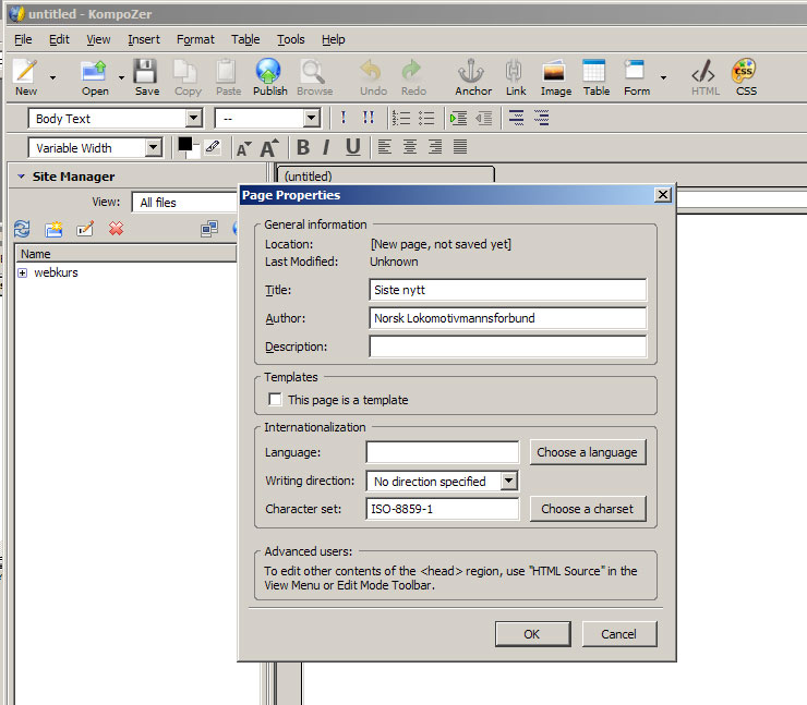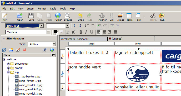 utvalgt tekst, lim inn i KompoZer med menyvalg 'Edit'