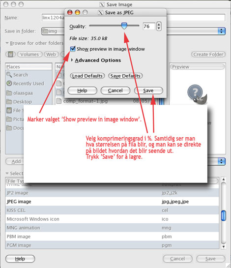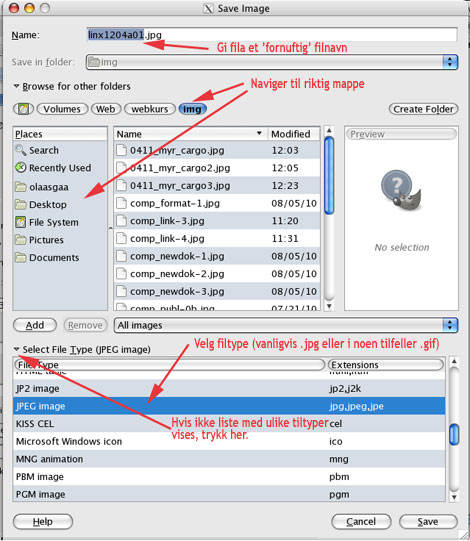 Vi avslutter med å lagre bildet på rett sted, riktig filformat og