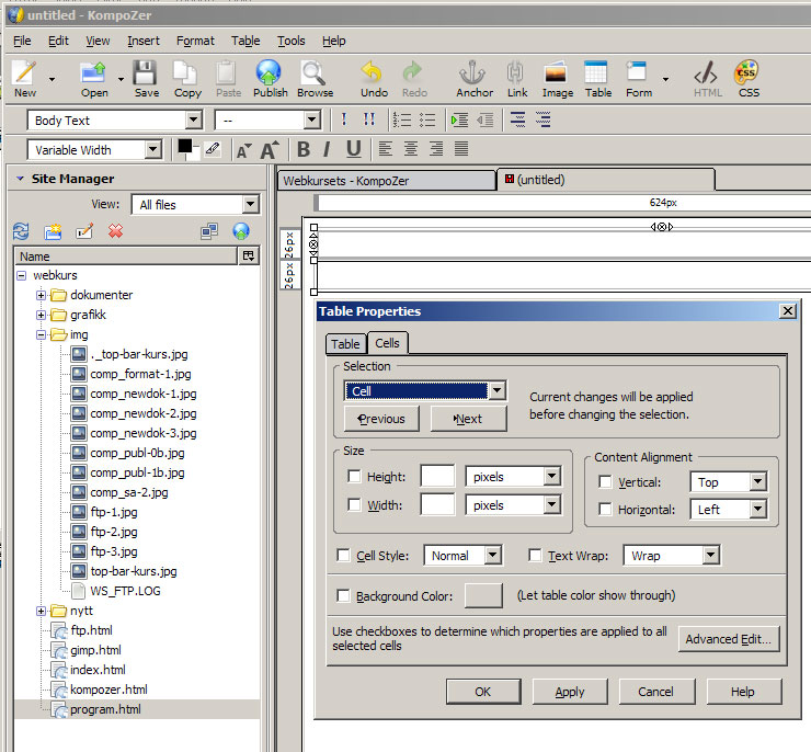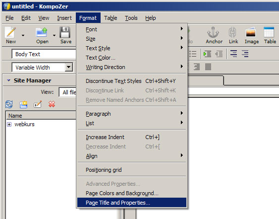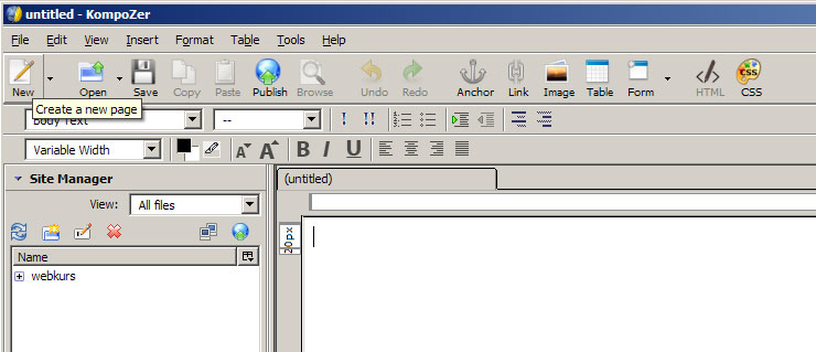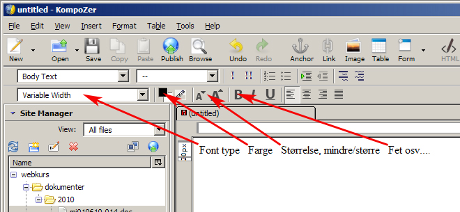utvalgt tekst, lim inn i KompoZer med menyvalg 'Edit'